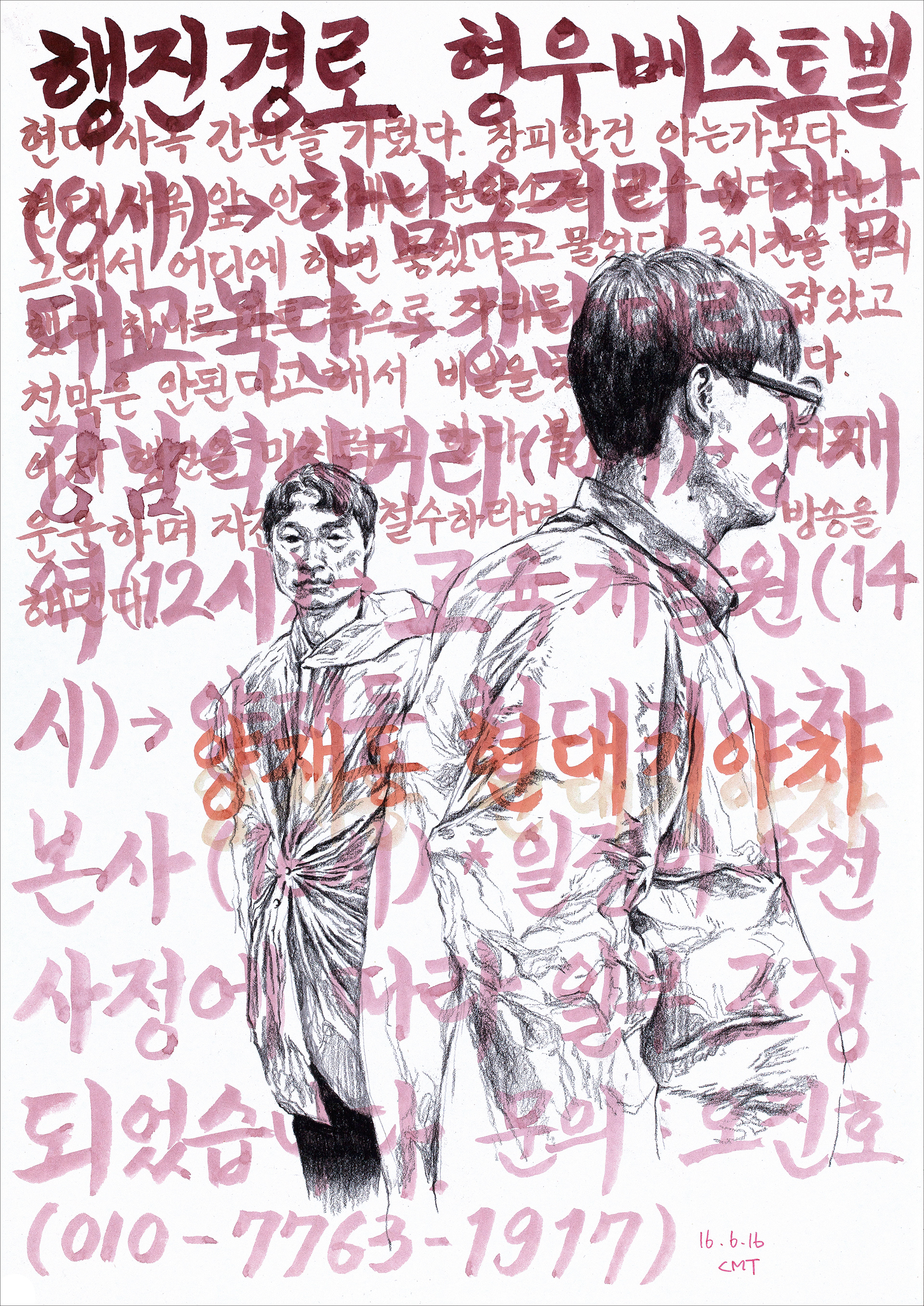 나의 '페이스 북 뉴스피드'에는 언론 뉴스가 다루지 않는 많은 사건이 올라온다. 내가 레지던시 때문에 잠시 영동의 조용한 마을에 내려와 노니는 동안, 도시에서는 세월호 참사 진실 규명, 한광호 열사 추모 행진, 옥바라지 골목 침탈 등의 사건들이 연일 터졌다. 물리적 거리로 인해 직접 연대할 수 없음이 안타까웠던 나는, 이 사건들이 휘발되지 않기를 바라며 SNS를 이용해 드로잉을 시작했다.